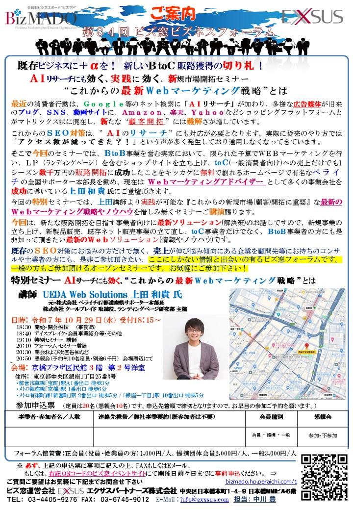 ここにしかない情報と出会いの有るビズ窓フォーラムですが、一般の方もご参加頂けるオープンセミナーです。